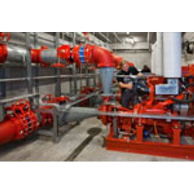 The complete sprinkler or fire pump system can be supplied mounted in a container with all internal piping leading through to the container wall ready for assembly with the supply line and pressure pipe.