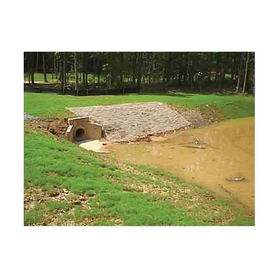 Polymer-enhanced soft armor applications are cost effective and easy to install. Place an open-weave geotextile fabric flush to the soil surface (do not allow tenting). Apply the correct powder polymer for the specific soil and clay type to the surface of the matting. Much of the polymer will fall through the matting and contact the soil, the rest will attach directly to the matting. This system produces a matrix that is highly resistant to erosion. Seed, fertilizer, lime (if needed) and polymer may be added together for ease of application.