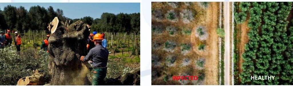 As per EU regulation, Xyelella Fastidiosa is considered a quarantine pest, which when detected must be contained or eradicated. A test solution of JC-9465 was prepared and applied to a small test site implemented in fogging and root irrigation, effectively destroying and controlling the biofilm that blocks the movement of water and nutrients in the host. By generating hydroxyl radical ions, JC-9465 breaks down the extra-polymeric substance (EPS) which forms a sticky substance that acts as a protective film around bacteria. Once the EPS is destroyed, other oxidative species quickly attacks the DNA of the bacteria’s nucleus to inactivated and prevent reproduction or mutation. Albeit early, the results reported have been extremely positive with leaves turning green, branches and twigs showing signs of recovery and returning to normal production with good numbers. The tests have been expanded to a larger sites and preliminary PCR results are very promising.