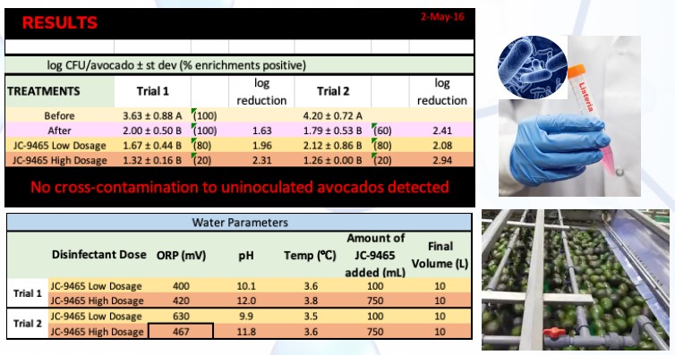The #1 Ranked Plant Sciences Reseach facility in the US evaluates JC-9465 as an antimicrobial process aid for produce wash – Avocados.