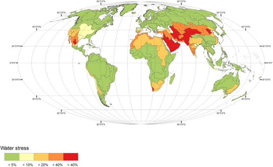 The FAO estimates that by 2050, the world will need to produce sixty percent more food to feed growing human populations. There will need to be a rise of fifty percent in irrigated cultivation which would require nineteen percent more global water for irrigation. However, there is only enough fresh water for a ten percent rise in irrigation; Figure 1 shows the areas most affected by water scarcity.