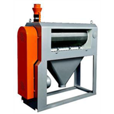 Used to detach flour from bran not removed after the last milling passage. Not normally used in maize mills. Completely made of metal construction .The body is made of cast iron and cover is of sheet plate. It can be mounted to the ground or suspended from the ceiling. The impact wheel is fitted directly onto the motor shaft. A conical spindle is used when placed after the plansifter and a straight spindle is used when placed after roller mill. The use of this machine increases milling efficiency and flour extraction rate without increasing ash or color intensity and allows the sifter passage to perform more effectively. It helps in mill sanitation by destroying insects and their larvae. Seperates endosperm particles without reducing the bran and germ sizes.