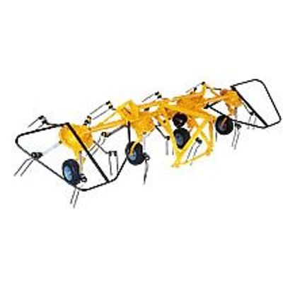 This rake is ideal for fast, clean raking of valuable fodder crops of hayor silage. Designed to produce fluffy swaths from light or heavy mown fodder, this PTO driven rake is fitted with 13 detachable tine bars, each with 4 double tines per arm. To assist in all conditions there is a variable tine bar cam, easily adjusted to ensure a clean sweep of all crops. This complete cam assembly operates in an oil bath for long service life.