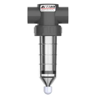 The HD 50, 100 & 150 offer high volume and low PSI loss for large systems. A thick schedule 80 PVC body, 90° configuration and stainless steel screen make this Action Filter tough and reliable. The most efficient and economical way to keep debris from clogging your irrigation lines, manifolds, sprinkler heads or zone valves is with a filter from Action Machining, Inc.
