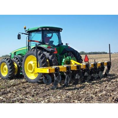 The Series 77 basic unit Includes: All welded tool bar Heavy 3/8` x 7` x 7` wall-welded 3 point assembly. 1 1/4` hi-strength shanks. 20` spring loaded coulters. Chrome alloy points. Heat treated shank guard. Gauge wheels on wings with implement tread tires and rest stands. Fully assembled.