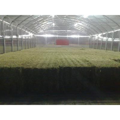 COMPACT Hay Dryer with heat recovery built with a grid made of concrete and an insulated greenhouse which dries 80 square bales of forage. On the load-bearing grid customers can drive with their tractors/telescopics. This COMPACT model`s fan works with a DIESEL motor and is equipped with a combustion chamber of adequate power.
