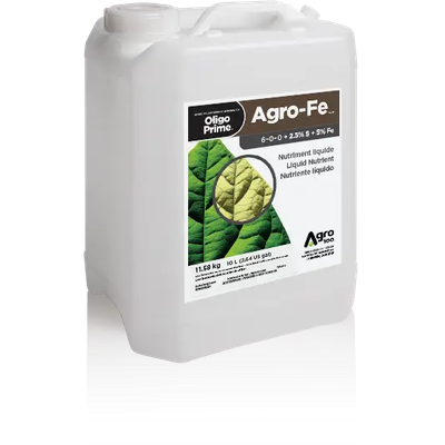 Agro-Fe OP is an agro-liquid designed to prevent and treat iron deficiencies. Iron is essential for breathing, chlorophyll formation, photosynthesis and nitrogen assimilation (protein formation).