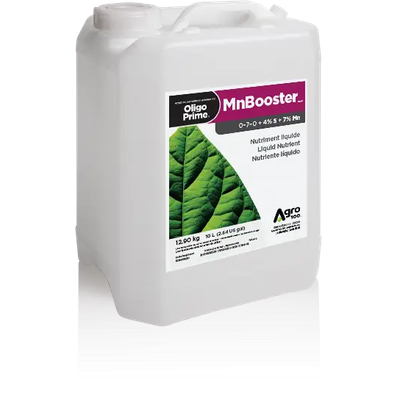 MnBooster OPis an agro-liquid with 7% of manganese designed as a preventive treatment against manganese deficiencies. Nutrients that are incorporated in the solution improve the plants’ vegetative growth and will help correct manganese deficiencies that commonly occur in soybean and wheat crops.