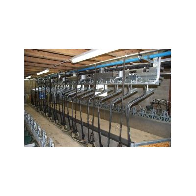 For the layout of your milking parlor, ALBOUY Equipement offers you the Quick Exit Stall by the Front: Linear milking platform available from 12 to 48 places. Simplified installation with pneumatic system, fully hot-dip galvanized structure with individual self-locking headlock in 35cm steps. Pivoting guide flap allowing the cascade entry of animals. Pneumatic ration dispenser: filling is done when the stall is in the high position. Stainless steel troughs.