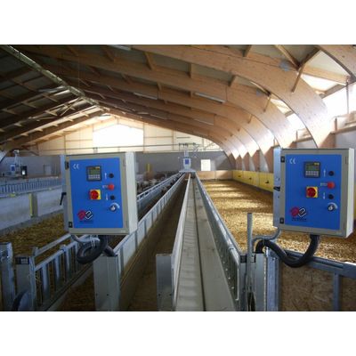 The Mechanized Feeder adapts to all types of buildings. It optimizes the total area available. All elements are standardized and can therefore be changed or extended later. The polypropylene gauge ensures total resistance to all foods. The cleaning is done automatically by the return of the conveyor belt before each feeding. Feeding is optimized thanks to batch management (4 batches and 4 meals over a length). It is a source of comfort in work , less fatigue: feeding is done from a fixed station.