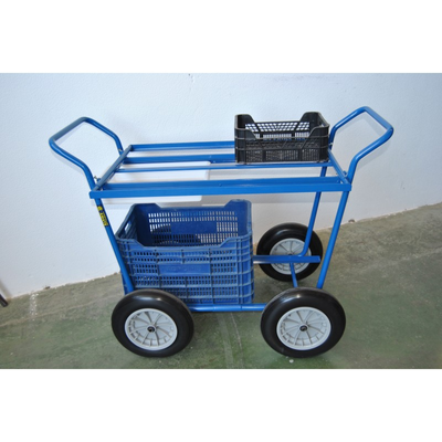 Route for the collection of vegetables and vegetables within the greenhouse. The Capacity for 2 boxes (based useful measure: 82x50,5cm) 3.50-8 Deli-Tire pneumatic routes. Rounds of needles. Tube axes 1.5mm