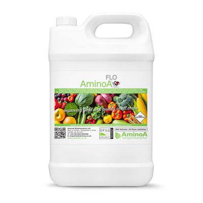 A highly concentrated natural biostimulant and nutrient source. AminoA Flo is an easy to use liquid natural amino acid complex with an in-built spreading and anti-foam technology to provide optimum plant cover and uptake. AminoA Flo is obtained through enzymatic hydrolysis obtained using high quality, stringently selected sources that guarantee the final product meets the highest quality standards. AminoA Flo meets Aminogram standardisation requirements and contains only fully absorbable L-α type amino acids.