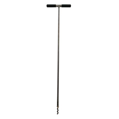 The Brown Moisture Probe allows you to determine moisture depth quickly and easily. Agronomists and farmers use it to determine the depth of moisture following irrigation. This 43" Probe has an auger tip and depth markings at 1`, 2`, and 3` from the tip. The probe is pushed into the soil using the attached 10" rubber-gripped handle. It will easily penetrate saturated soils, but not dry soils. At the end of the push, the probe is twisted and then withdrawn. A small ball on the tip helps retain the sample in the auger flights to allow visual confirmation of the moisture condition of the soil sample. The Brown Moisture Probe is made of unplated carbon steel.