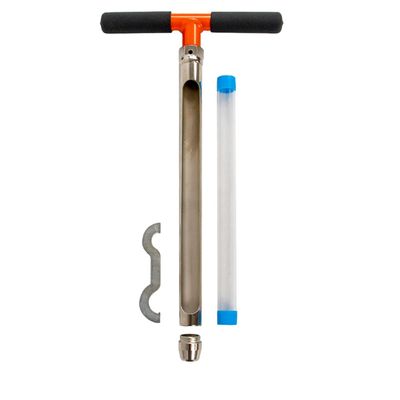 Replaceable Tip Regular Soil Probes include a 10" Rubber-Gripped Cross Handle, 1" Standard Tip, and a Spanner Wrench. They are compatible with 5/8" threaded Slide Hammers and the Hammer Head Cross Handle. The Spanner Wrench is used to add or remove Replaceable Soil Probe Tips. The Soil Probe body is constructed using a thick-walled nickel-plated chromoly. This specific Soil Probe does have a 24" sample window.