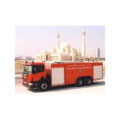 Water Tank: 1,350 litre. Foam Tank: 9,050 litre. Equipment: Multi-pressure bronze water pump. Balanced pressure foam system. One high pressure hose reel. Water/foam monitor. Chassis: Scania 6x4. Crew: Driver plus five (total six).