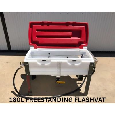 FLASHVATS can be made in a range of sizes, including 300L, 800L and the most common 180L capacity. Standard features within the chemical mixing vat include an agitation nozzle, a vat rinse nozzle and a drum rinse nozzle. The larger-sized vats have larger agitation and suction points. The 800L vat has 2x 1 1/4" agitators for rapid dissolving of granules and powders. These functions are controlled by a stainless steel manifold with taps that are within easy reach of the operator.
