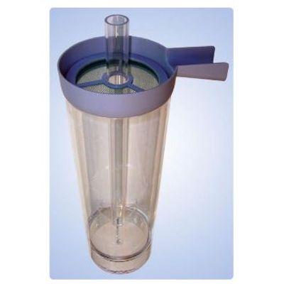 The McDonald incubator is used for the artificial and controlled incubation of fish eggs (e.g., for trout, salmon, perch, catfish, tilapia, and many other fish species). It mimics natural incubation conditions, with the fill level and water flow rate being the directly adjustable parameters. Water temperature and other water quality parameters are controlled indirectly via the water supply. The McDonald incubator can be operated in both continuous and recirculating modes. The fish water, supplied from the top, exits at the bottom in the area of the semicircular base, rises in the cylindrical section of the container, and flows out via the overflow located in the upper section. The unique shape of the container ensures that the eggs are kept in constant motion and do not stick together.
