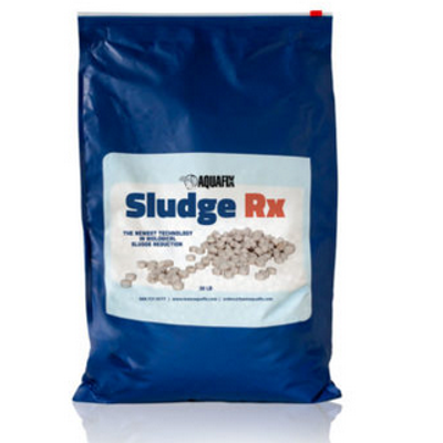 A TABLET A DAY KEEPS SLUDGE AT BAY. Sludge Rx is a bacterial and biostimulant tablet designed to maximize sludge reduction. These tablets target sludge accumulations to lower effluent TSS, ammonia, phosphate, and improve effluent pH. Use Sludge Rx in lagoons and sludge storage basins to avoid costly dredging.