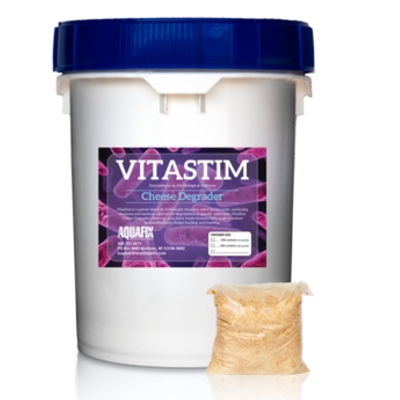 VitaStim Cheese Degrader is designed for cheese production facilities to tackle fatty acids in dairy waste, reducing grease, filaments, sludge hauling, and foaming. It features vitamins, bio-stimulants, and bacterial cultures at five times the concentration of most catalog or local supplier offerings.