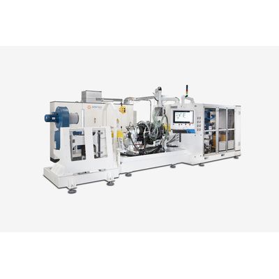 Test stand designed for EOL production testing of agricultural tractor transmissions.