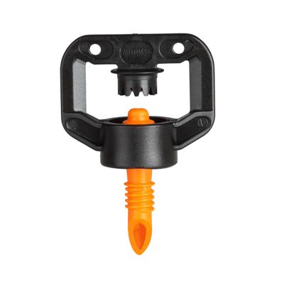 Micro sprinkler with pushfit / quickfit connector with operating pressure ranging from 1.5 – 2.5 Kg/cm2. For overhead irrigation of orchards