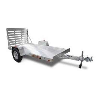 1-2000# Rubbertorsion axle - No brakes - Easy lube hubs.ST175/80R13 LRC Carlisle radial tires (1360# cap/tire).Phantom aluminum wheels, 5-4.5 BHP.Muminum fenders.Extruded aluminum floor.5` Front retaining bumper.VFramed aluminum tongue, 48` long with 2` coupler.4) Stake pockets (2 per side).LED Lighting package, safety chains.Swivel tongue jack, 800# capacity.Aluminum tailgate - full width x 39` long.Overall width = 75.5`.Overall length = 146`