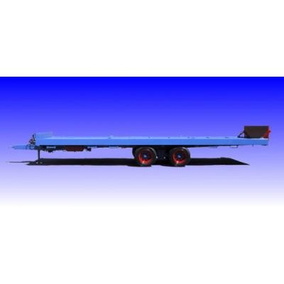 Tandem axle with cantilever. Twin wheels. Suitable for transporting big volumes, bales, fruit box, machinery (for ex. crawlers). Grain-rice type floor. Hydraulic tipping. Pneumatic or hydraulic brake, hydraulic parking jack. Rear foot board. sideboards on request.