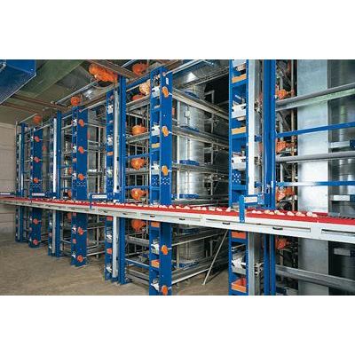 Vertical conveyors Space-saving, for off-set nest arrangement. Vertical conveyors are the standard solution whenever there is little space between the nests and the cross collection. They operate at a gradient of 50° and are available in two widths: 350 and 500 mm.