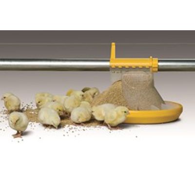 LANDMECO's Spin Feeder is a simple, effective and economical method of providing broiler breeder pullets (male and female) with an evenly distributed supply of feed directly on the ground. The result is birds with very uniform body weight, and only a very reduced workload for the producer.