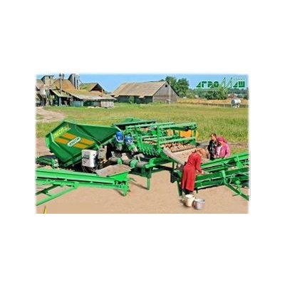 Potato sorter is designed for receiving product from self-unloading vehicles, separating from admixtures of soil and plant residues, dividing the potato tubers in three fractions (forage, seed and food), manual selection of tubers that are out of condition and loading them into containers or vehicles. Potato sorter consists of receiving hopper, entrance ramps, potato cleaner, calibrator, remote and unloading conveyors and control sensor for electric drive of working bodies, sorting table.