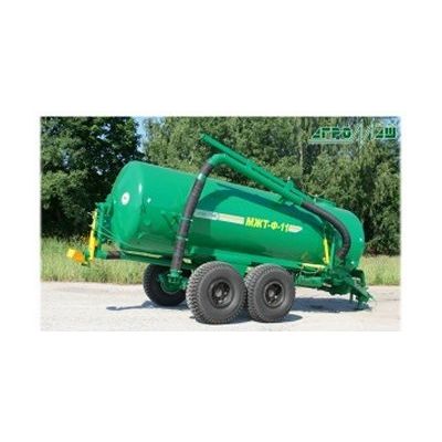 The slurry tanker MGT-F-11 is designed for self-loading, transportation, mixing and overall surface distribution of liquid organic fertilizers as well as for transportation of service water and car washing, at fire-fighting, road washing, etc. The tanker is equipped with a vacuum system and a hatch for loading machine by autonomous devices.