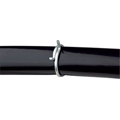Clamping system specially designed for hanging irrigation pipe or tubing to wire for use in overhead drip or microsprinkler applications.