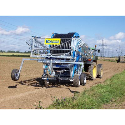 The Briggs brand of hosereels is based on the tried and tested Ocmis range, imported and adapted especially for the UK market. Each machine goes through a rigorous assembly, pre delivery inspection and testing program prior to despatch to ensure trouble free commissioning and ease of operation. Each of the highly efficient turbine powered units is packed with advanced features and the standard specification of all models is high. Even the smallest machines have hydraulic lifting for the trolley and are fitted with the latest Program Rain 10-12 controller. Hosereels are available in sizes to suit every farm, from 63/200 to 125/750. See technical spec for full model list. Numerous options are available including 4 wheel chassis, fully galvanised drum, full hydraulic package and remote SMS monitoring and control. (see `Options` tab above).