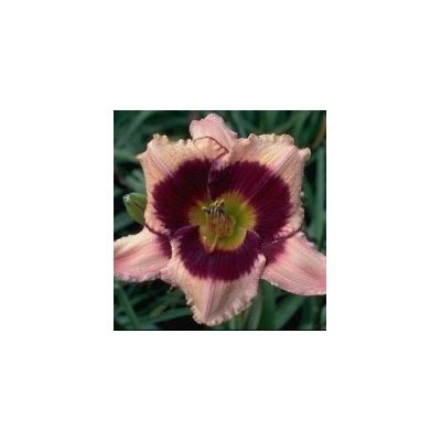 (Hansen-D., 1999) height 38`, bloom 6.5`, season E, Rebloom, Semi-Evergreen, Tetraploid, Coral plum with purple plum eye above yellow throat