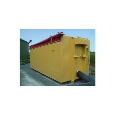 For blowing in wood chips. Dimensions: 7,000 x 2,350 x 2,250 mmCapacity ca. 37 cbm. Wire-rope and chain-hoist mounting with central roller. Special double doors with rubber seal. Inlet nozzles on rear side. Filter cloth and tarpaulin cover. Extinguisher duct with sprinkler nozzles. Plexiglas viewing window.