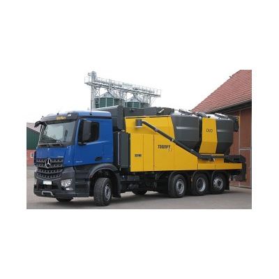 The TOURMIX 02-VE with the 4.5 ton weighing mixer is the basic model of the new series. It works according to the proven Buschhoff system. As soon as the coarse meal has the structure defined by the screen, it is pneumatically transferred to the combination valve and then into the mixer. Rolled feed is also transferred pneumatically to the valve which guarantees a smooth transfer of the rolled materials. The results are an even feed structure and best performance.. Immediately after processing, the feed structure can be checked by taking samples. Further feed components which need not be processed - for example coarse soy meal - can be conveyed directly into the mixer.