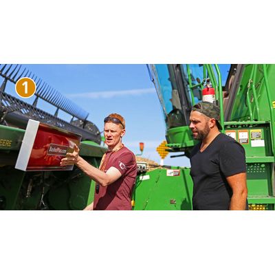 How the Bushel Plus SmartPan System Works: The Bushel Plus Smartpan System is precise, dependable, and designed to measure grain loss easily with any combine. With your safety in mind, all units are remote controlled and portable so that no, wiring or bolts are needed to attach it to the combine. Our magnetic drop pan can quickly and easily move from one combine to the other – no tools needed!