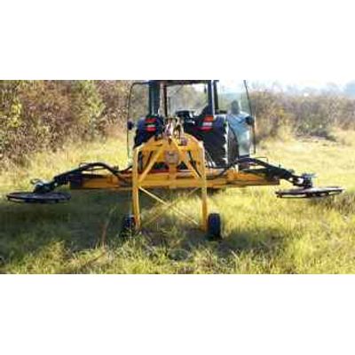 This model was custom-built to mow blueberries planted on berms in rows from 9 to 13 feet wide. Hydraulically adjustable working height 13 inches, depending on the berm height. Hydraulically adjustable working width so user can simultaneously extend the dual Mow-Arounds up to 47 inches. Mow-Arounds powered by independent hydraulic pump with reservoir incorporated into the frame.