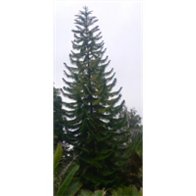Cook Pine. Native to New Caledonia. Very similar too and often confused with Norfolk Island Pine when young. The habit is narrower and less feathery. Far more suitable in its early years for a town seaside garden. Nearly always leans slightly one way. The habit is narrower because the older branches are lost and new epicormic ones develop on the stem and replace them (this occurs in later life). In its native habitat Araucaria columnaris shows maximum growth and abundance at the edge of the sea, forming dense populations on cliffs exposed to the prevailing winds. Can reach 60 metres in natural habit.