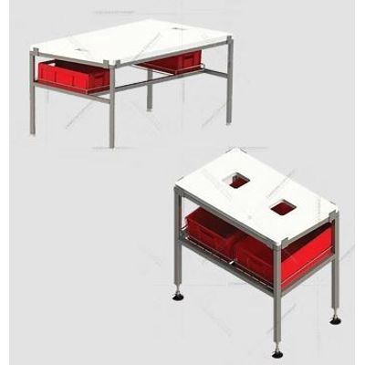 Polyethylene material suitable for foods and could be easily clean by removing them easily. Adjustable foot profiles. Made of polyethylene material and AISI 304 quality stainless steel. Tables are designed for easy and quick cleaning. Different size of holes, can be located on the tables depending on the place of the plastic cases where meat is stored under the table