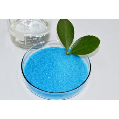 Properties: Sky blue crystal granular or power,can soluble in water and diluted acetic acid. The solution appears as weak acidity. It will be effloresces slowly in dry air, and its surface will become white powder substance. Copper Sulphate will lose four crystal water when heated to 110, and will be changed into white copper sulfate anhydrous which is easy to absorb water when the temperature is higher than 150°C.