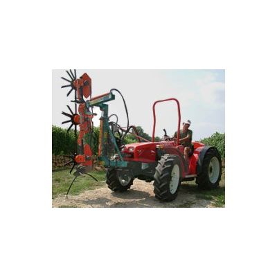 Hydraulic Shoot Removing unit for vineyards: the ideal tool for the soft removal of the shoots from the trunk of the vines and the weed growing under the rows. This unit was designed to be mounted on the suitable frame, both on the front of the tractor and on the side in single (or double) version with a special flange or on the universal rear hoister of any tractor with rear connection. In the picture, it is presented with a specific frame for the front assembly on tractor without hoisters.