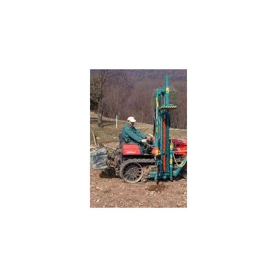 The lateral pole driver is used for the trellising of vineyards, orchards, etc. located on slopes or on flat ground. The Rambo L machine has been designed to work in any situation. The machine is mounted on the side of any tractor with tracks or not. Its position at the centre-side allows its use on untilled soil without any danger for the tractor to lift.