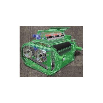 High-quality chill cast iron rolls. Double row shperical roller bearings mounted in square bearing blocks. Machined bearing slides. Hydraulic roll closure. Externally adjustable scrapers. Stainless steel feeder. Roll feeder, pin feeder and vibratory feeder available.