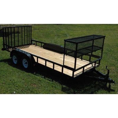 2990 lb GVWR. 205/75R15 New Radial Tires. LED Grommet Mounted Lighting. 3" Channel Tongue. 2,000 lb A-Frame Tongue Jack. 2" A-Frame Coupler. 3 X 2 X 3/16 Angle Main Rail. 3500 lb EZ Lube Idler Axle. 12" Tall Sides. Taillight Protectors. Heavy Duty 4` Landscape Gate. Fenders with Backings.