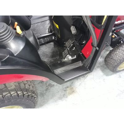 Features: Constructed of commercial grade steel with Massey Ferguson color match finish. Safety glass windshield locks open increasing airflow. 12-volt Windshield wiper. Sliding door windows. Backhoe compatible. Premium all-steel cab features a removable rear panel. Front-hinged steel roof lifts up on gas shocks. Pin-hinged doors remove in seconds. Total seal door system. Lockable doors.