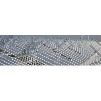 The roof of a Venlo greenhouse is self-supporting and is made from aluminium. The aluminium box gutter is a structural element. The design takes account of the fact that a greenhouse roof cleaner and/or a repair shuttle can travel through the gutter and that a service rail can be attached at the end of the gutter. The gutter collects rainwater and feeds it down the slope towards the gable ends. The gutter also drains away the condensation that collects in the gutter on the inside of the greenhouse.