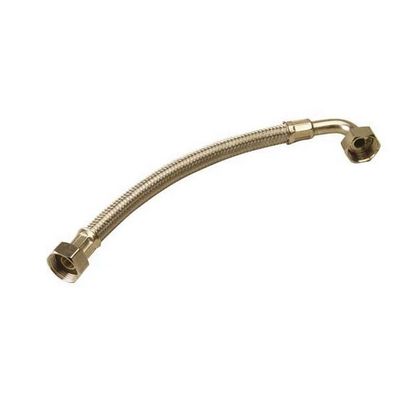Flexi Hose 60cm long, with 1" MBSP x 1" FBSP connections & with 90ยบ Elbow. Rubber interior for assembly of pressurised water systems.