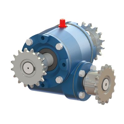 This GWK series has the following specific features: Equipped with a continuous input shaft and two output shafts. Equipped as standard with 10B Z16 sprockets and 10B-2 duplex chains.