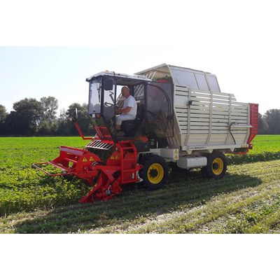 Harvester ideal for picking up vegetables and herbs for the industrial sector. Lightweight and easily manoeuvrable industrial mower/ harvester, ideal for unloading produce on the ground.